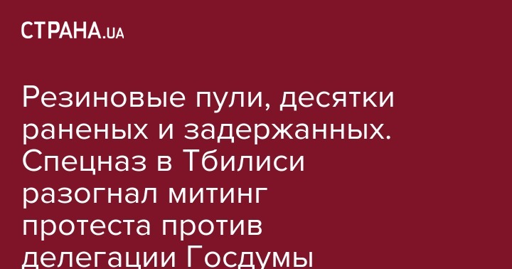 В ночь на 21 июня многотысячная акция протеста в Тбилиси перед парламентом Грузии закончилась тем, что силы спецназа применили спецсредства и разогнали демонстрантов. По данным Минздрава страны, всего пострадали 52 человека, в том числе 38 полицейских. В больницы доставлены несколько десятков человек.