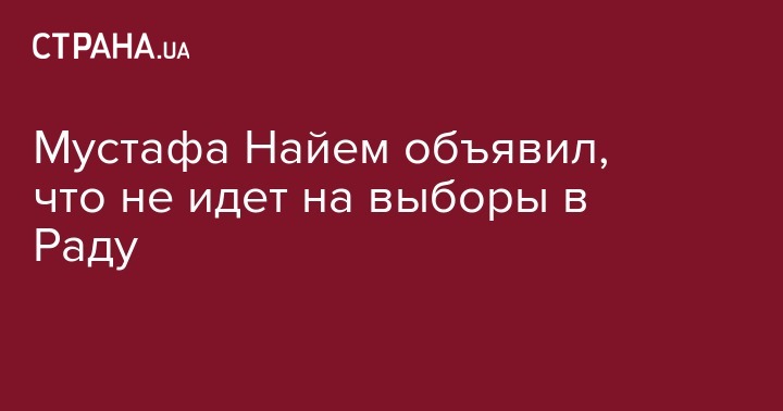 Народный депутат Мустафа Найем решил не участвовать во внеочередных выборах в Верховную Раду. Об этом сам нардеп сообщил в своем Telegram.
