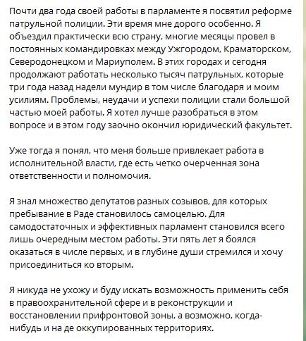 Найем отметил, что никуда не уходит и "будет искать возможность применить себя в правоохранительной сфере и в реконструкции и восстановлении прифронтовой зоны, а возможно, когда-нибудь и на деоккупированных территориях".