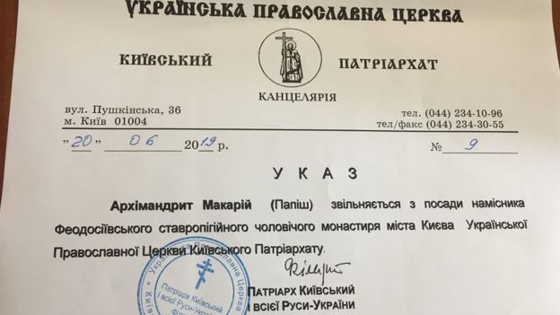 После поместного собора УПЦ КП почетный глава ПЦУ Филарет уволил наместника Свято-Феодосиевского монастыря в Киеве архимандрита Макария, который не принял участие в мероприятии. Об этом пишет ВВС Украина