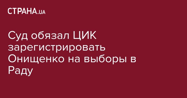"Обязать Центральную избирательную комиссию зарегистрировать кандидатом в народные депутаты Онищенко А.Р., выдвинутого "Социалистической партией Украины" в одномандатном округе №93 на внеочередных выборах народных депутатов 21 июля 2019 года", - говорится в решение суда.