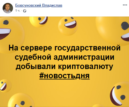 С начала 2018 года на сервере Государственной судебной администрации добывали криптовалюту. Об этом рассказал журналист Владислав Бовсуновский в Facebook.