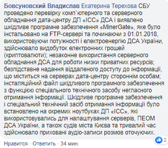 По его словам, информация об этом стала известной после проверки СБУ. Сотрудники Службы безопасности проверили оборудование дата-центра ГП "ИСС" ГСА и обнаружили вредоносное программное обеспечение "MinerGate".