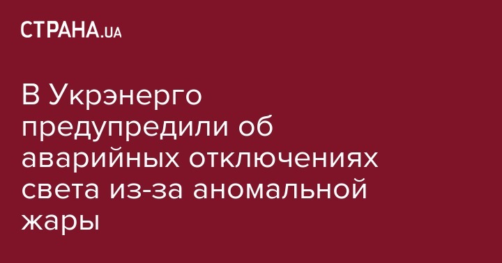Из-за аномальной жары, которая царит в Украине во второй половине июня, в стране могут начаться аварийные отключения электричества. Об этом сообщает пресс-служба компании "Укрэнерго"