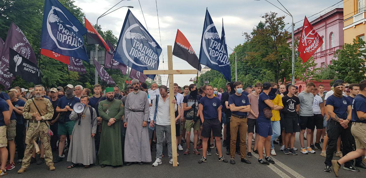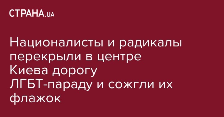 Националисты и радикалы перекрыли в центре Киева дорогу ЛГБТ-параду и сожгли их флажок