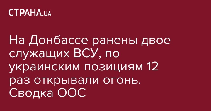 В воскресенье, 23 июня, противник 12 раз нарушили режим прекращения огня на Донбассе. Вследствие обстрелов двое украинских военнослужащих получили ранения. Об этом сообщает пресс-центр штаба ООС на странице в  Facebook.