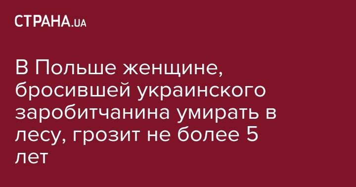 В Польше владелице польского предприятия, которая оставила умирать украинского рабочего в лесу, угрожает до пяти лет лишения свободы. Об этом сообщает "Европейская правда" со ссылкой на Gazeta Wyborcza.