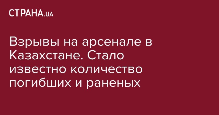 В Казахстане после взрывов арсенала и эвакуации города Арысь по состоянию на 07:00 (05:00 по киевскому времени) вторника за медицинской помощью обратились 165 человек, из них 89 госпитализированы. Об этом сообщает "Интерфакс" со ссылкой на Национальный координационный центр экстренной медицины минздрава республики.