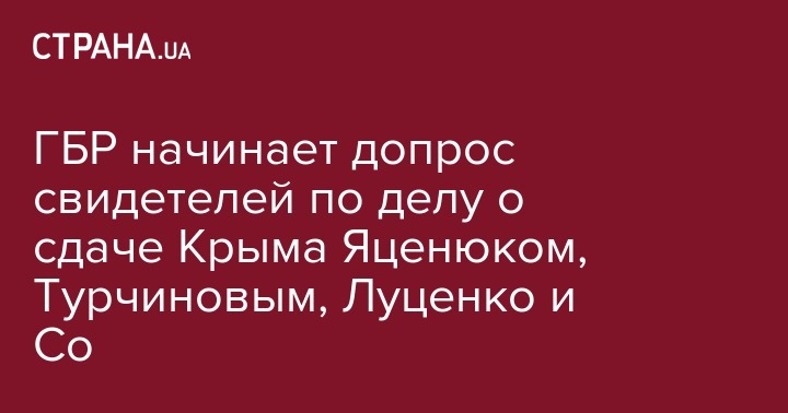 Государственное бюро расследований Украины (ГБР) начинает допрос свидетелей по делу о сдаче Крыма высшими должностными лицами Украины. Об этом написал адвокат Виталий Сердюк на странице в Facebook.