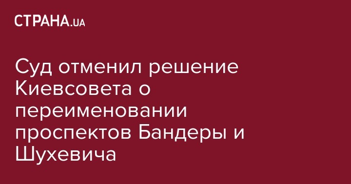 Окружной административный суд Киева отменил решение о переименовании Московского проспекта на Степана Бандеры и проспекта генерала Ватутина на Шухевича.