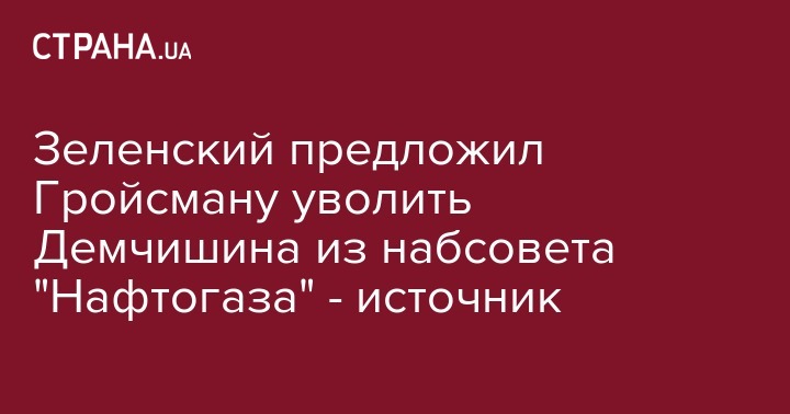 Президент Украины Владимир Зеленский предлагает премьер-министру Владимиру Гройсману уволить члена наблюдательного совета Национальной акционерной компании "Нафтогаз Украины" Владимира Демчишина.