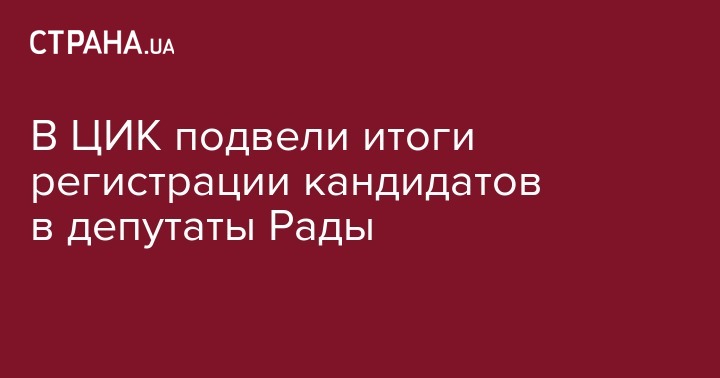Центральная избирательная комиссия (ЦИК) зарегистрировала избирательные списки 21 политпартии и 3 171 кандидата в депутаты Верховной Рады на внеочередные парламентские выборы 21 июля. Это уже окончательное число желающих пройти в парламент. Об этом на брифинге 26 июня сообщила председатель ЦИК Татьяна Слипачук.