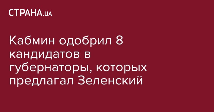 Кабинет министров одобрил назначение на должность 8 новых глав областных государственных администраций, которые ранее предложил правительству президент Владимир Зеленский. Об этом после заседания Кабмина заявил представитель президента в правительстве Андрей Герус, пишет "Интерфакс-Украина".