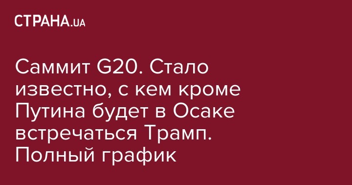 Кроме того, глава вашингтонской администрации 27 июня проведет переговоры с премьер-министром Австралии Скоттом Моррисоном, 28 июня - с премьер-министром Японии Синдзо Абэ. После этого пройдет трехсторонняя встреча Трампа, Абэ и премьера Индии Нарендры Моди, затем американский лидер встретится отдельно с Моди . Трамп также проведет переговоры с канцлером ФРГ Ангелой Меркель и бразильским президентом Жаиром Болсонару.