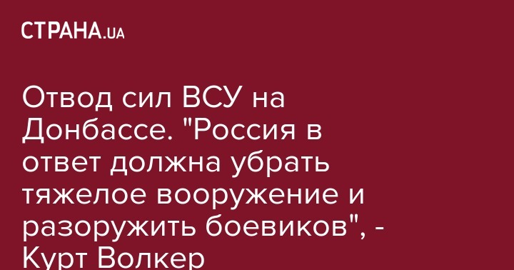 Отвод сил ВСУ на Донбассе. "Россия в ответ должна убрать тяжелое вооружение и разоружить боевиков", - Курт Волкер