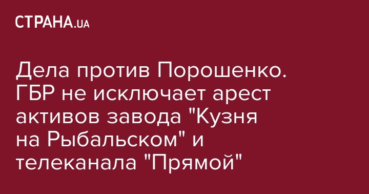 Государственное бюро расследований, которое занимается восемью делами против экс-президента Петра Порошенко, не исключает арест активов завода "Кузня на Рыбальском" и телеканала "Прямой", которые фигурируют в двух из них. Об этом директор ГБР Роман Труба рассказал в интервью "Стране".