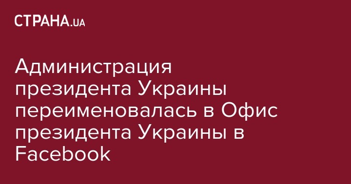 Администрация президента Украины переименовалась в Офис президента Украины в Facebook