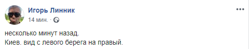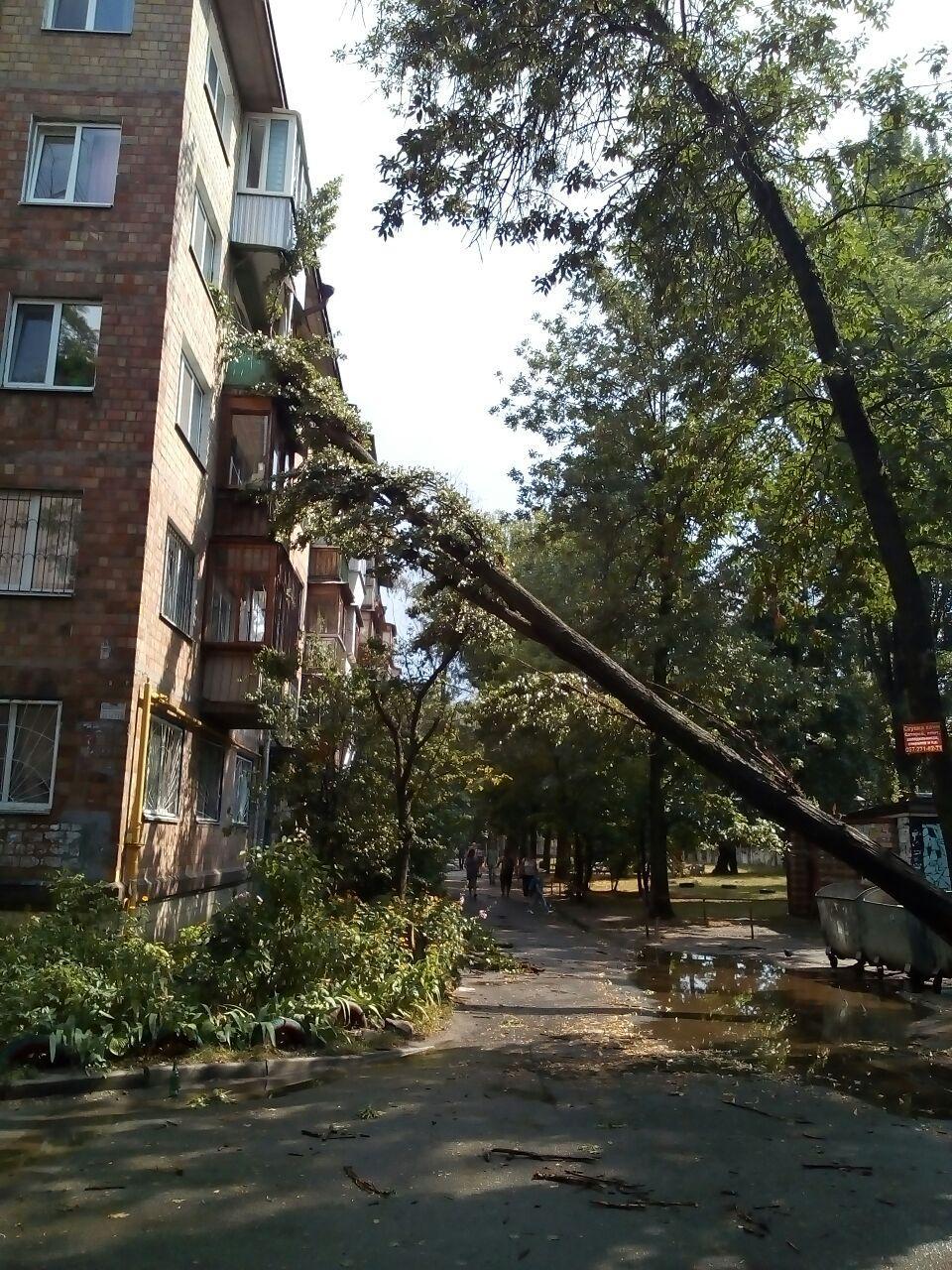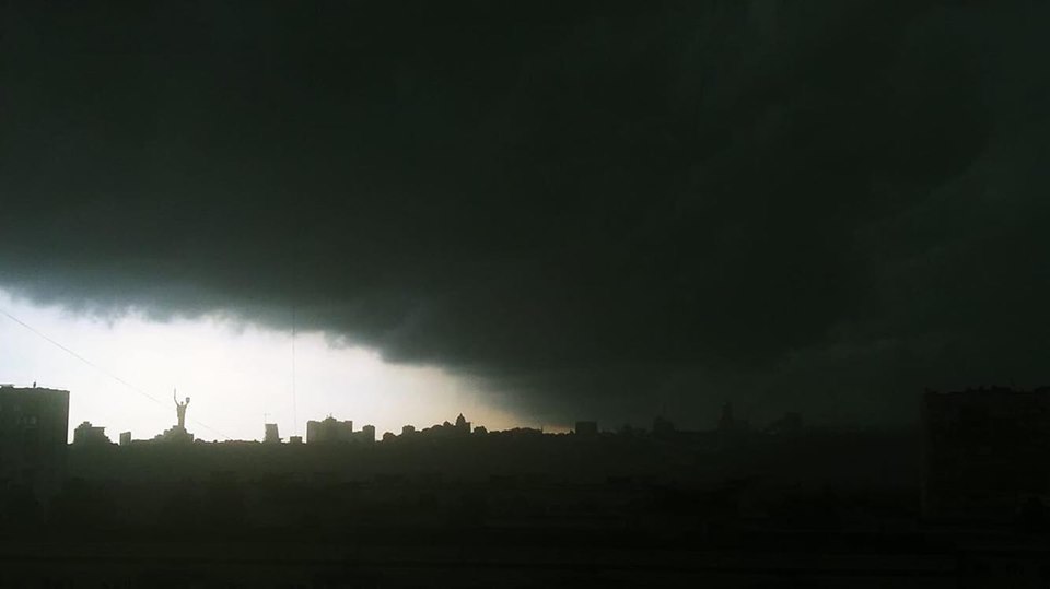 27 июня, после долгих жарких дней, около 12:30 Киев накрыл ливень. Небо затянуло тучами буквально за полчаса, а налетевшая на столицу гроза сопровождался сильными порывами ветра. Буря прошлась по всем районам города. Шторм повалил деревья на дорогу и автомобили, срывал кровли.