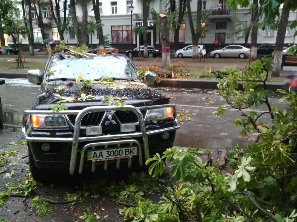 На улице Липской на Печерске каштан упал на припаркованный автомобиль.