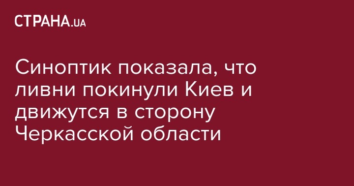 Киев уже в тылу сильных ливней, теперь непогода идет в сторону Черкасской области. Об этом на своей странице в социальной сети сообщила синоптик Наталья Диденко.