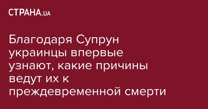Благодаря Супрун украинцы впервые узнают, какие причины ведут их к преждевременной смерти