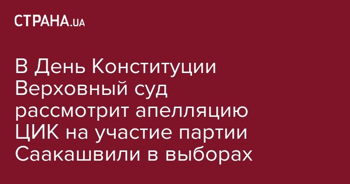 В пятницу, 28 июня, в Верховном суде Украины рассмотрят апелляционную жалобу Центральной избирательной комиссии относительно участия партии "Рух новых сил" Михеила Саакашвили во внеочередных парламентских выборах 21 июля, передает Интерфакс-Украина.