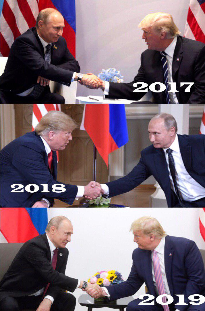 9:32 В Сети сравнили рукопожатия Путина и Трампа за все их встречи.