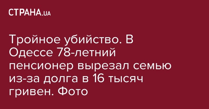 В ночь на 28 июня в Одессе мужчина вырезал соседскую семью, которая якобы задолжала ему 16 тысяч гривен. Об этом сообщает "112 Украина".