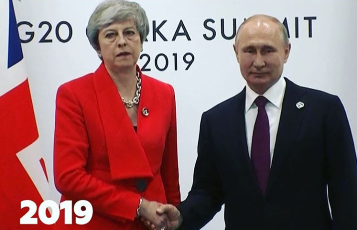 В соцсетях появились два снимка рукопожатия британского премьера Терезы Мэй и президента России Владимира Путина. Они сделаны в идентичных обстоятельствах с разницей в три года – в 2016 и 2019 годах. Однако лица руководителей государств выражают совершенно разные эмоции.