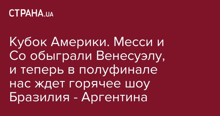 Кубок Америки. Месси и Со обыграли Венесуэлу, и теперь в полуфинале нас ждет горячее шоу Бразилия - Аргентина