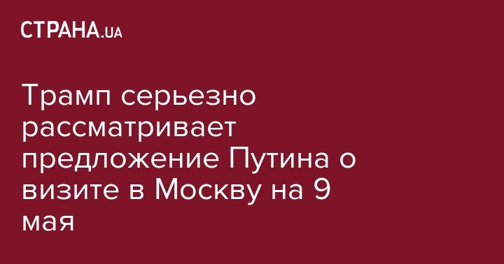 Президент США Дональд Трамп заявил, что серьезно рассматривает приглашение президента РФ Владимира Путина на празднование 75-летия Победы в Москве в 2020 году. Об этом сообщает "РИА Новости".