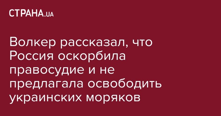 "Россия не предлагала освободить захваченных украинских моряков. "Это "предложение" было оскорблением правосудия, поскольку не было оснований для их задержания, а также оскорблением ООН и суверенитета Украины", - написал Волкер на своей странице в микроблоге Twitter.
