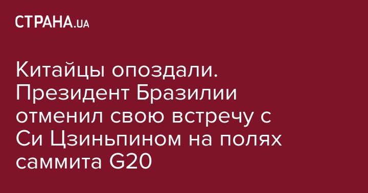 Несмотря на то, что задержки в расписании мировых лидеров на саммитах не редкость, Болсонару все равно решил отменить переговоры со своим китайским коллегой. Встреча была назначена на 14:30 по местному времени (08:30 по киевскому), а в 14:55 пресс-секретарь Болсонару объявил об ее отмене. "Президент решил отменить двустороннюю встречу, - заявил пресс-секретаря президента Бразилии Отавио Рего Барроса. - Начало встречи было сильно задержано, мы долго ждали в переговорной комнате".