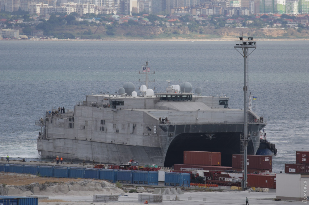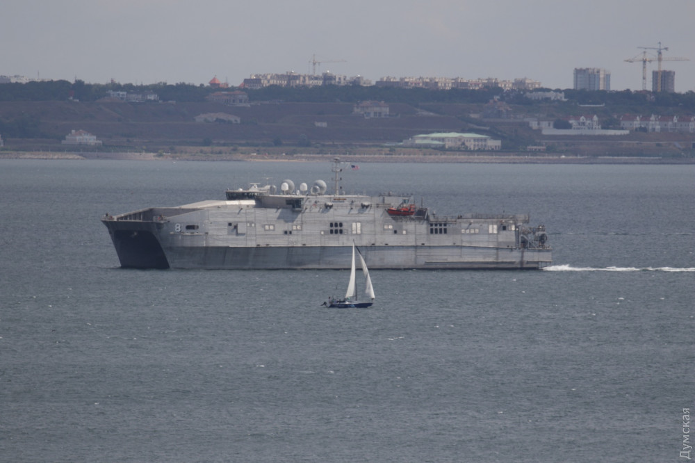 "Американский быстроходный транспортно-десантный корабль USNS Yuma за ночь пересек Черное море и сегодня утром зашел в порт Одесса. Катамаран ошвартовался у причала 1к", - сказано в сообщении.