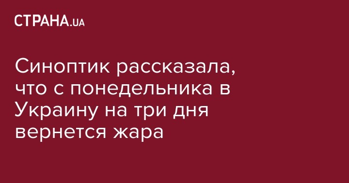 Синоптик рассказала, что с понедельника в Украину на три дня вернется жара