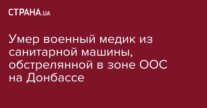 Число погибших от обстрела противником санитарного автомобиля подразделения Объединенных сил в районе населенного пункта Водяное Донецкой области увеличилось до двух – от травм умер военный медик. Об этом сообщает пресс-центр операции объединенных сил в Facebook.