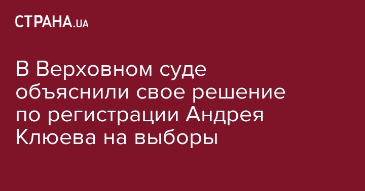 В Верховном суде обязали Центральную избирательную комиссию еще раз рассмотреть документы о регистрации бывшего главы АП времен президентства Виктора Януковича Андрея Клюева, но не приняли решение непосредственно о его регистрации. Об этом сообщается на странице ВС в Facebook.