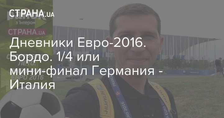 "Мы не смогли усидеть на месте и съездили в Бордо (это 600 километров от Парижа), чтобы посмотреть, что же там происходит во время мини-финала Италия-Германия. Сначала заскочили на стадион. Он точно самый необычный из тех, что доводилось видеть на Евро: больше похож на футуристический музей.