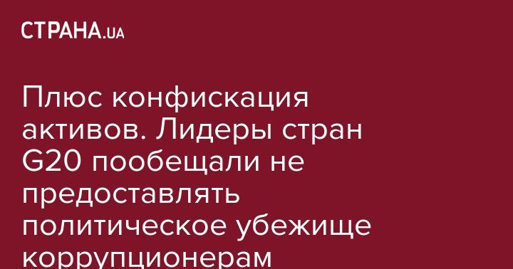 Лидеры стран на саммите G20 подписали декларацию, в которой они обязались не предоставлять политическое убежище обвиняемым в коррупционных преступлениях. Документ обнародован на официальном сайте G20.