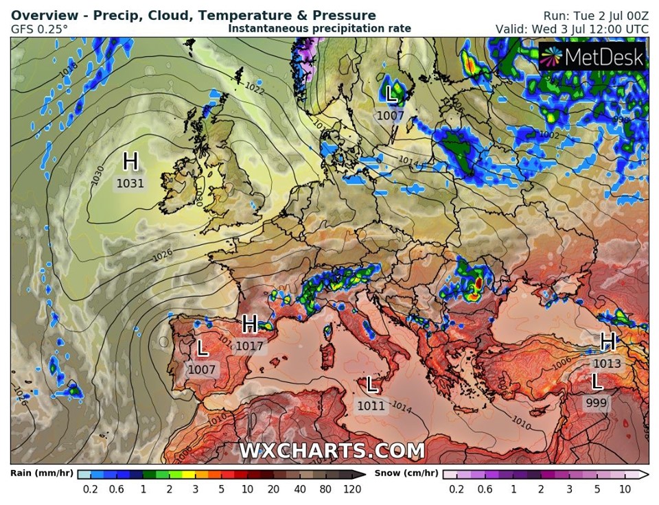 Напомним, 2 июля по всей стране пройдут грозовые дожди, а в Одессе жара достигнет +38 градусов.