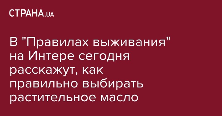 Во вторник, 2 июля, на канале "Интер" выходит в эфир очередной выпуск шоу "Правила выживания". Сегодня зрители узнают, на что стоит обратить внимание при покупке растительного масла, и какой продукт лучше выбрать для тех или иных целей - первого или холодного отжима, дезодорированное или прессованное, рафинированное или нерафинированное. Начало шоу в 14.45.
