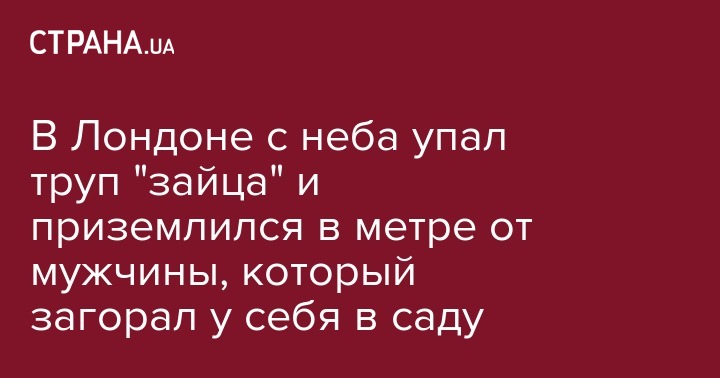 В воскресенье, 30 июля, в Лондоне прямо в сад одного из жителей района Клэпхэм с неба упал труп. Причем труп упал в метре от мужчины, который загорал у себя в саду.Об этом сообщает "Русская служба ВВС".