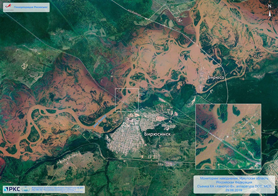 На полученных кадрах виден серьезный масштаб затопления. В частности, на снимках показаны города Нижнеудинск и Бирюсинск, где вышли из берегов реки и затопили многочисленные строения.
