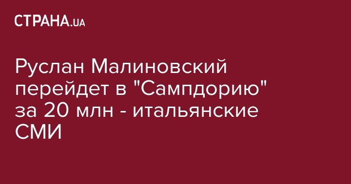 Руслан Малиновский перейдет в "Сампдорию" за 20 млн - итальянские СМИ