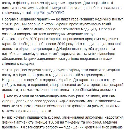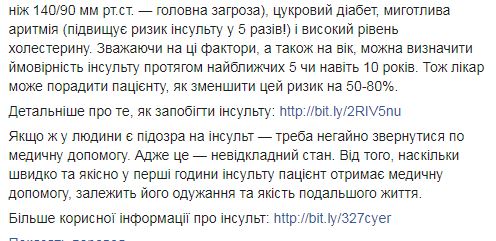 По ее данным, уже много лет инсульт на втором месте среди причин инвалидности и смертности как в мире, так и в Украине. Супрун также пишет, что с 2020 года в Украине начнут создавать современные инсультные центры по евростандартам, если осенью все учреждения специализированной помощи подпишут договор с Национальной службой здоровья.