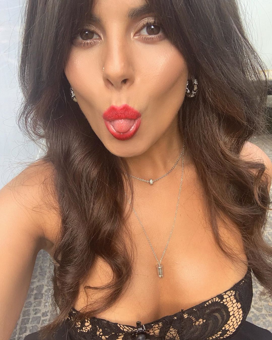 Снимки получились пикантными и развенчали все подозрения об интересном положении певицы. На первом фото Каменских с ярко красными губами игриво показывает язык и шикарное декольте. Фото артистка не подписала, она указала лишь стилистов и визажистов, которые работали над созданием ее образа.