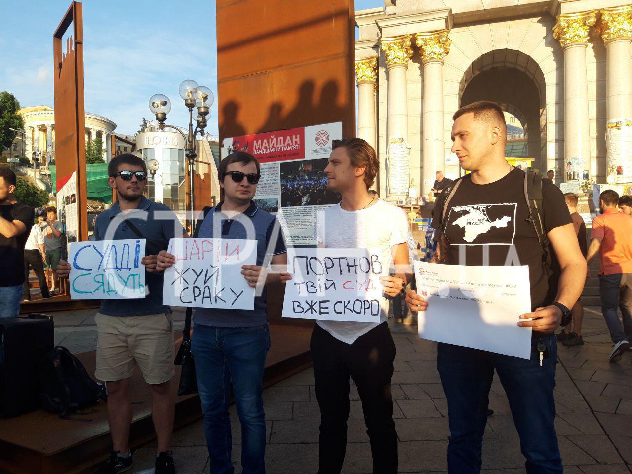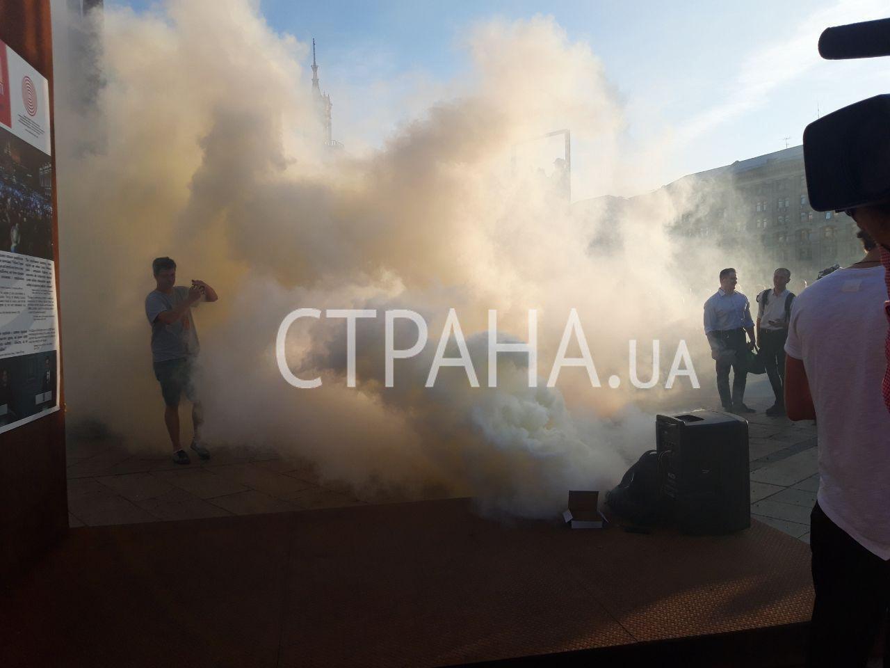 Акция протеста началась в 20:00. Среди участников - преимущественно порохоботы националисты, которые жгут файера, из-за которых всю площадь затянуло дымом.