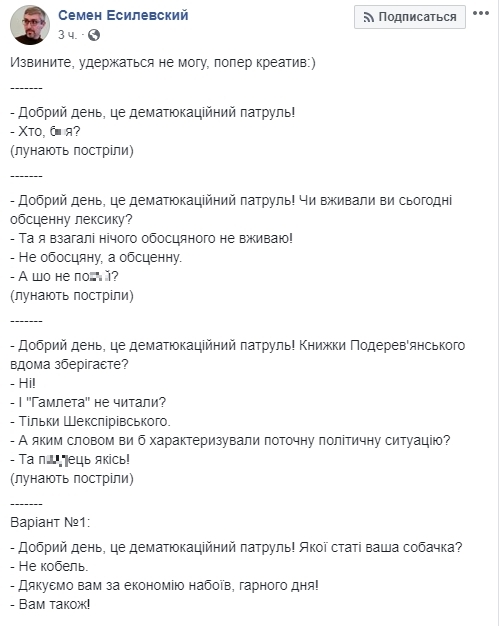 Украинский физик Семен Есилевский постит шутки о "дематюкации: