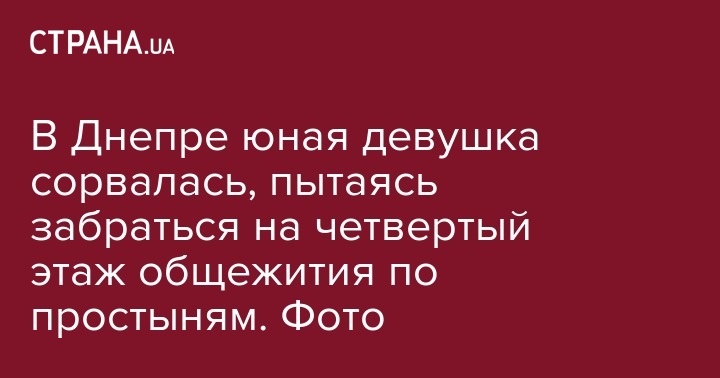 В Днепре юная девушка сорвалась, пытаясь забраться на четвертый этаж общежития по простыням. Фото