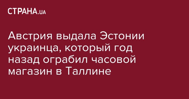 Австрия выдала Эстонии 29-летнего гражданина Украины, которого подозревают в совершении ограбления магазина часов в Таллинне. Об этом сообщает "Интерфакс-Украина".